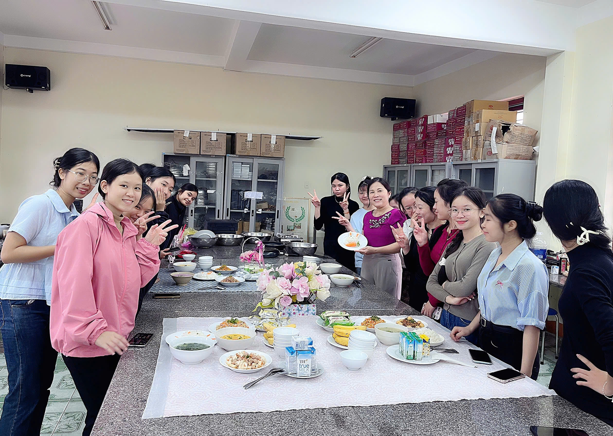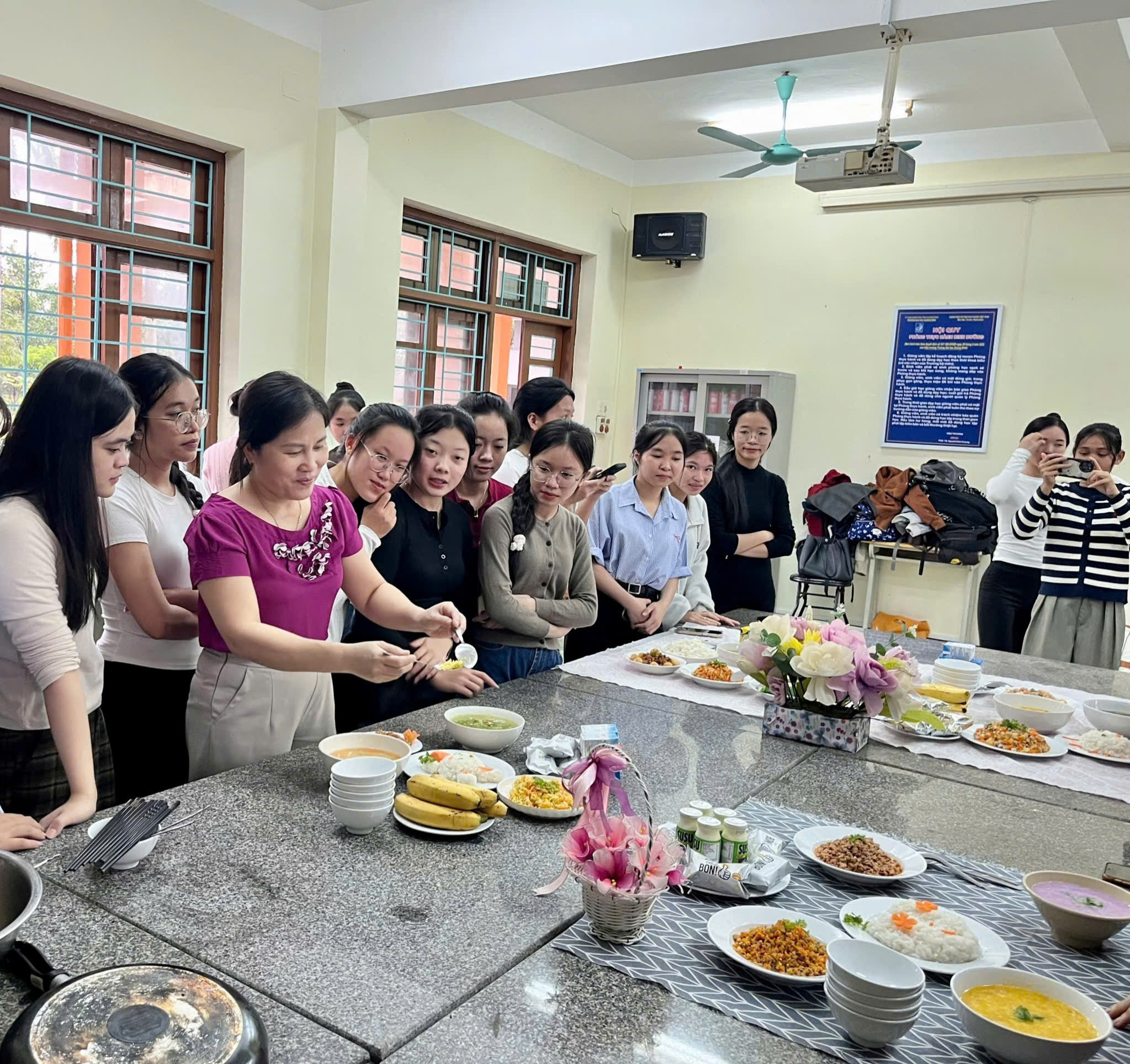 Các nhóm sinh viên đã thể hiện sự sáng tạo trong việc lên thực đơn, kết hợp nguyên liệu và trình bày món ăn, đảm bảo tiêu chí ngon – sạch – đủ chất – hấp dẫn đối với trẻ nhỏ. Giảng viên hướng dẫn cũng giúp sinh viên phân tích giá trị dinh dưỡng của từng món ăn, trao đổi cách tổ chức bữa ăn cho trẻ tại trường mầm non và rèn luyện kỹ năng xử lý các tình huống sư phạm trong chăm sóc – nuôi dưỡng trẻ.