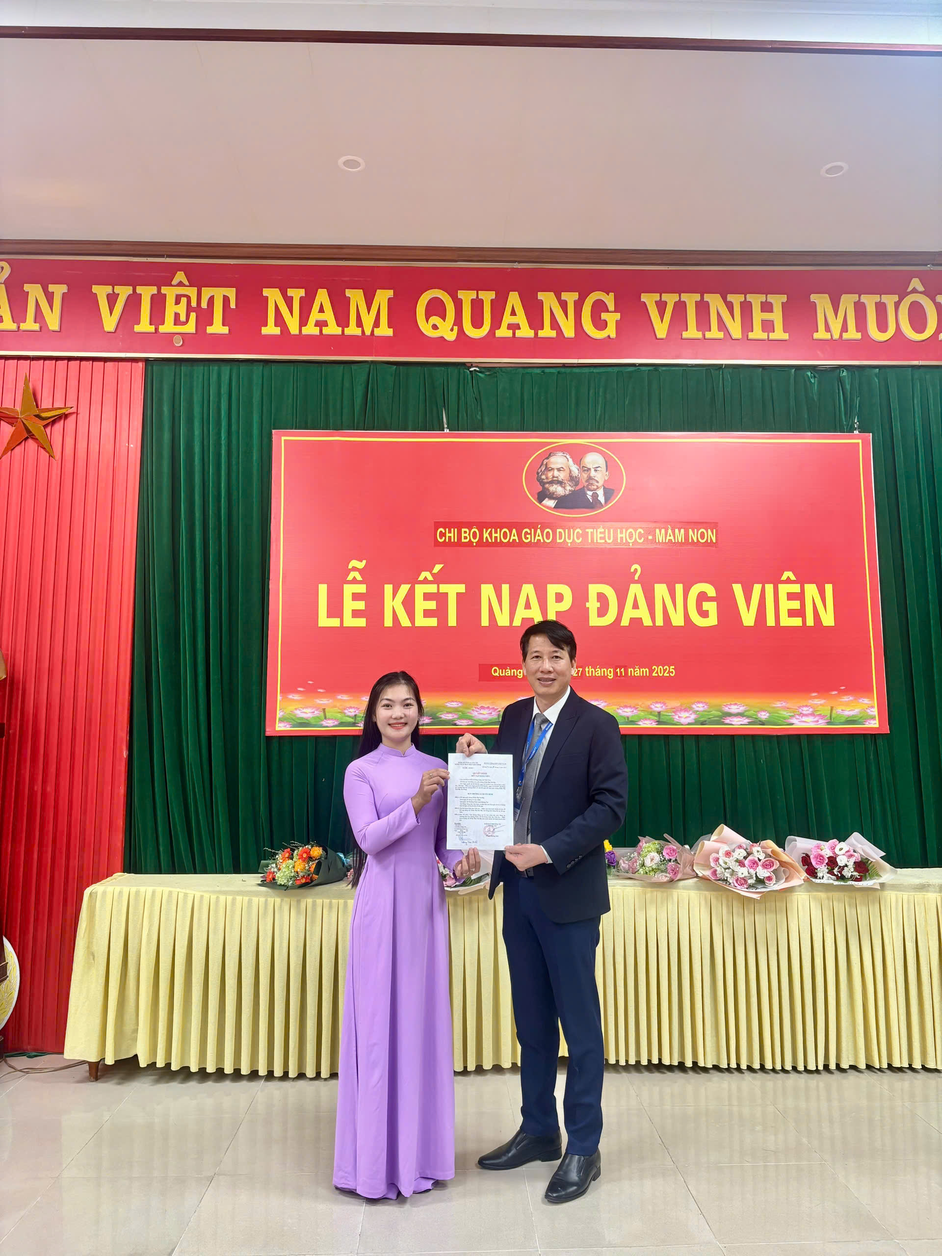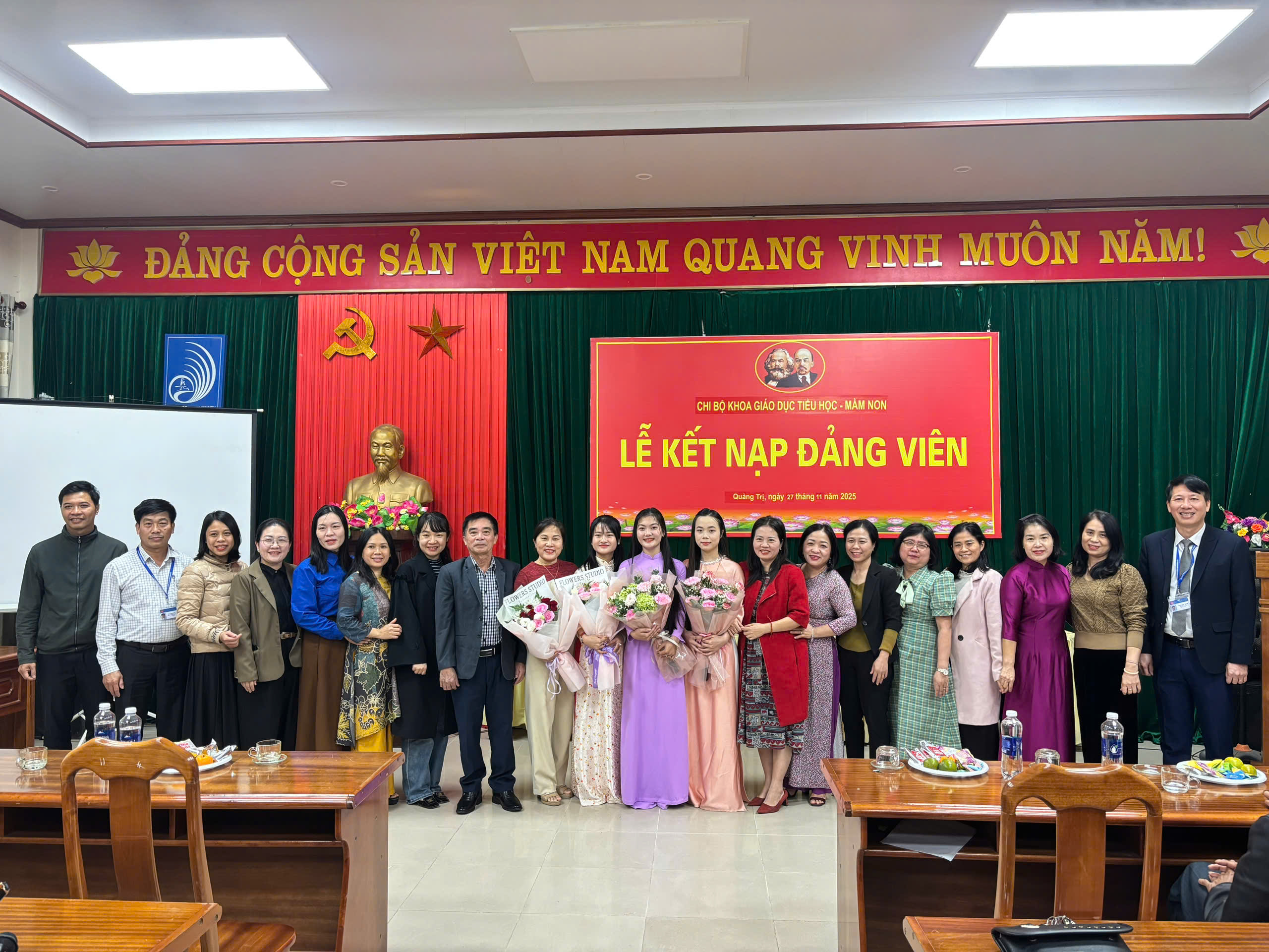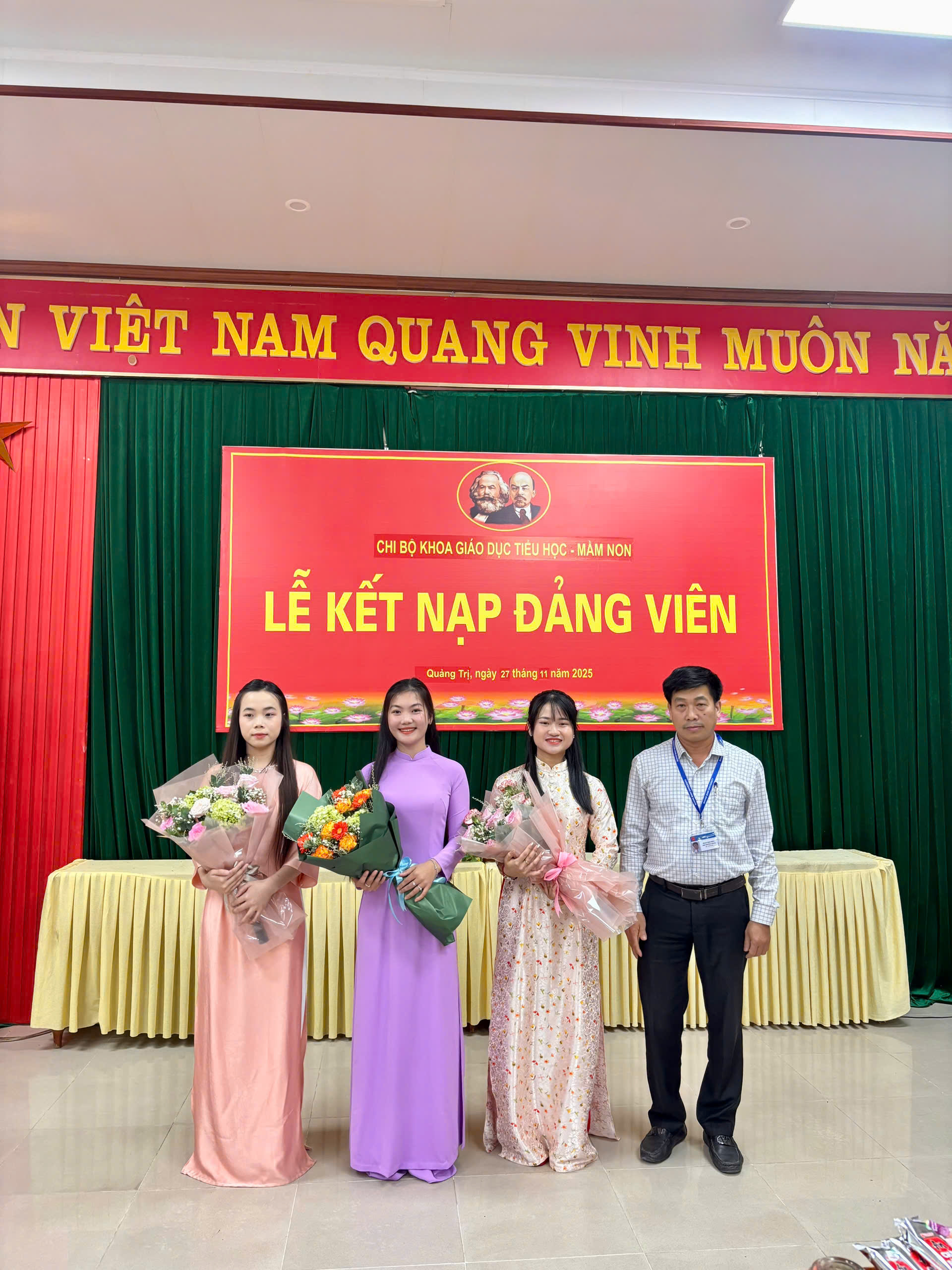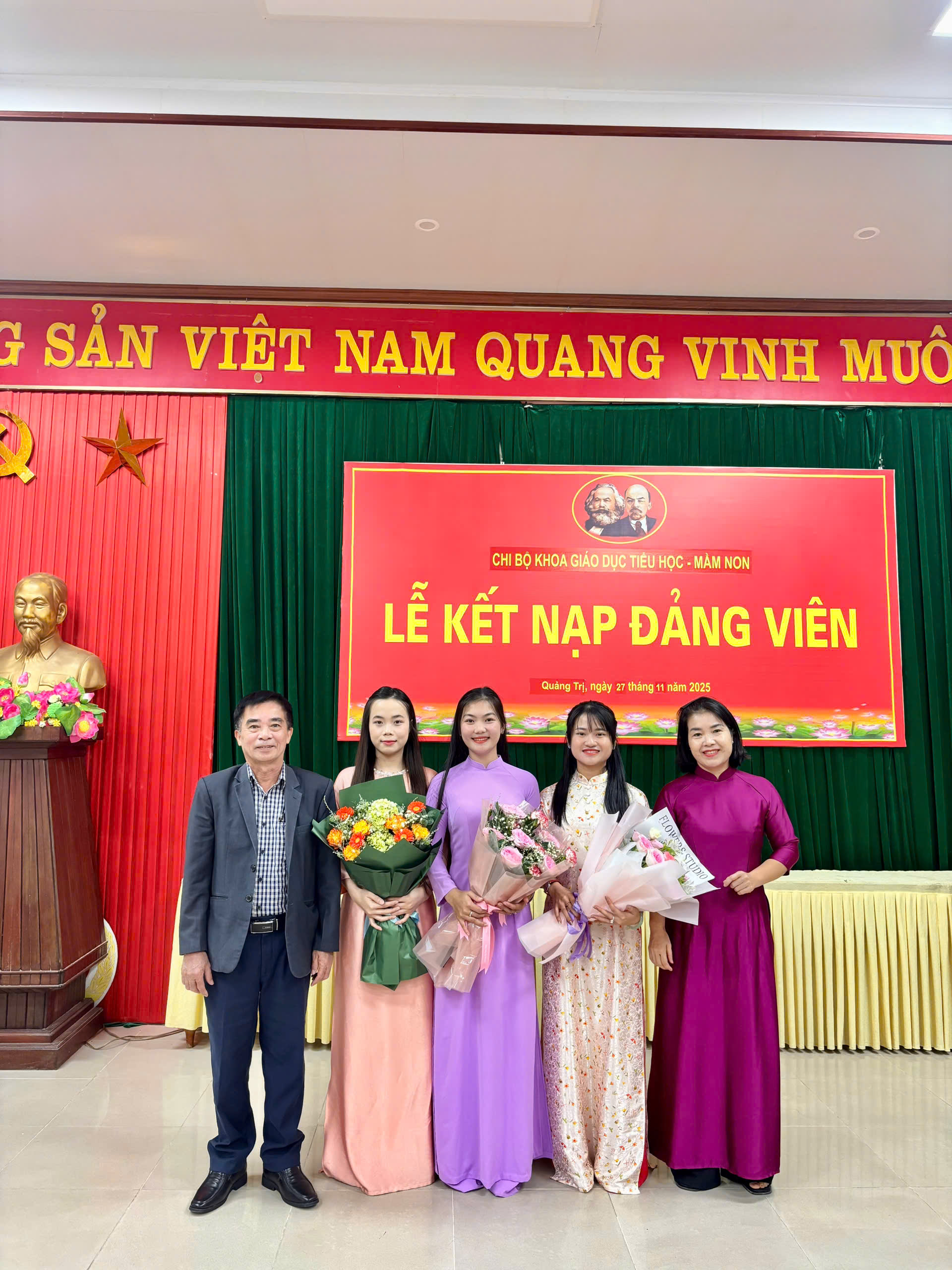Chiều ngày 27/11/2025, trong không khí trang nghiêm và đầy xúc động, Chi bộ Khoa GD Tiểu học – Mầm non đã long trọng tổ chức Lễ kết nạp Đảng viên mới cho 03 quần chúng ưu tú, gồm các đồng chí: