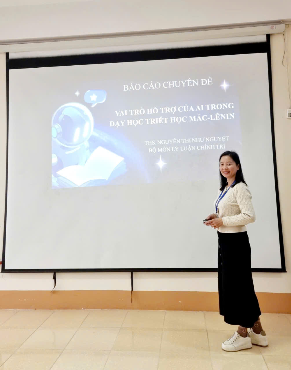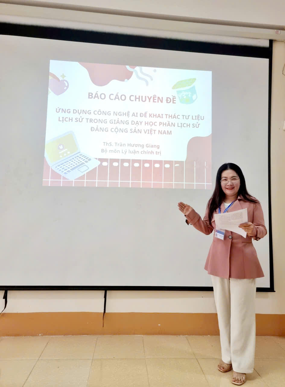Tại seminar, Tổ Lý luận chính trị đã trình bày ba chuyên đề trọng tâm, tập trung làm rõ mối quan hệ giữa tư duy lý luận và công nghệ hiện đại: từ định hướng triển khai Nghị quyết 57–NQ/TW trong giảng dạy Lý luận chính trị, vai trò hỗ trợ của trí tuệ nhân tạo trong dạy học Triết học Mác – Lênin, đến ứng dụng AI trong khai thác tư liệu lịch sử phục vụ giảng dạy học phần Lịch sử Đảng Cộng sản Việt Nam.