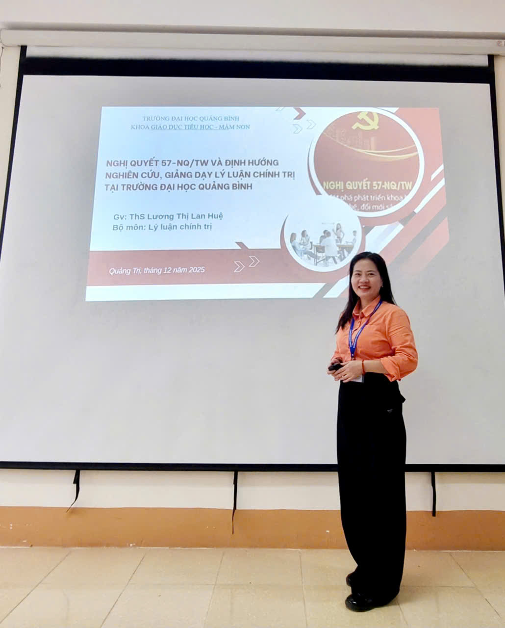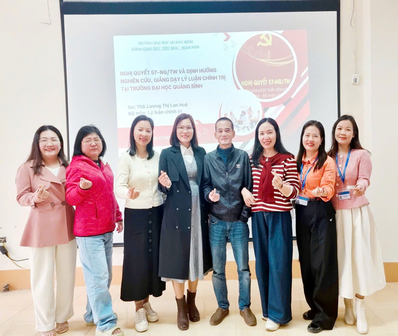 Triển khai Nghị quyết số 57–NQ/TW của Trung ương về phát triển khoa học – công nghệ và đổi mới sáng tạo, Bộ môn Lý luận chính trị Trường Đại học Quảng Bình đã tổ chức buổi seminar khoa học nhằm cụ thể hóa các định hướng đổi mới trong giảng dạy và nghiên cứu các học phần Lý luận chính trị trong bối cảnh chuyển đổi số của giáo dục đại học.